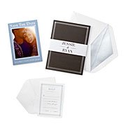 A fresh take on timeless design, these invitations are an expression of a couple's unique style, and will become a keepsake cherished for decades to come. The folded card features the wedding details printed in a handwritten script type with silver foil accents and a personalized, pearlized paper band. Inspired by our classic Anniversary Journal, this design is printed by premier stationery company Crane on warm white paper. Choose from a selection of colors for the inside of the card and type, and an silver metallic lining gives the corresponding envelopes an elegant touch. Coordinate your invitations with complementing RSVP cards and Save the Dates, which feature your special photo. Printed in the Berkshires of Massachusetts. Click here to see all color options and customization options. For special inquiries, please contact dropship@uncommongoods.com. When you order samples, we'll credit the amount toward your invitation purchase.Anniversary Journal Wedding Stationery